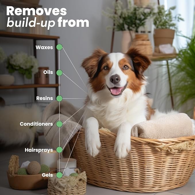 • Pet Grooming Supplies: This clarifying pet shampoo is great for removing build-up from waxes, oils, resins, conditioners, hairsprays, and gels. Consistent application effectively washes out chalks and heavy silicones.