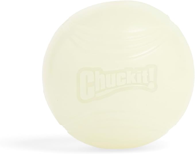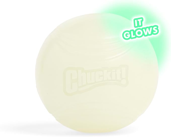 • Nighttime Fun: 5 minutes under any bright light generates 20 to 30 minutes of glowing playtime, no batteries or cords needed; Made with safe photoluminescent material, size large Chuckit! balls for dogs fit all large Chuckit! Launchers
