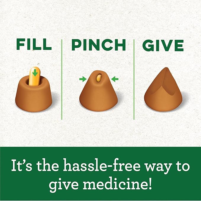 • Tuck the pill or capsule into the built in pocket and your dog gets medication along with a tasty flavored treat