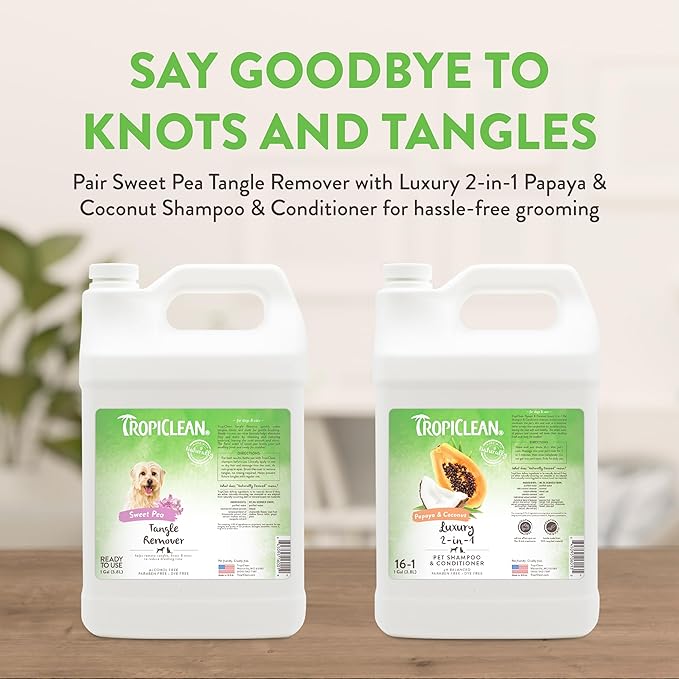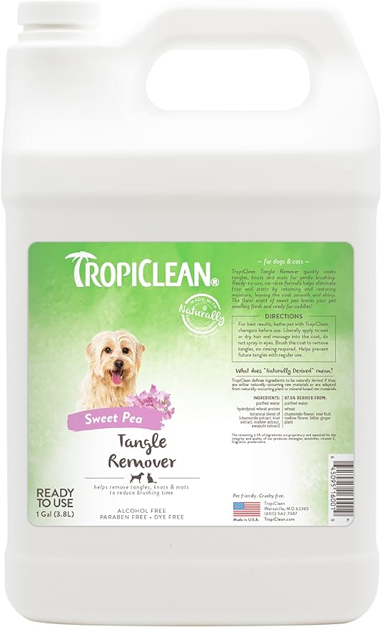 TropiClean Sweet Pea Cat & Dog Detangler Spray Dematting | Dog Conditioner Spray Derived from Natural Ingredients | Made in the USA | 1 Gallon