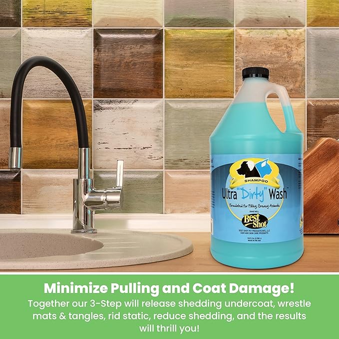 • For Dogs and Cats: Our shampoo is suitable for dogs, cats, puppies, and kittens (over 12 weeks old) who are prone to over-shedding. The shampoo comes in a 1-gallon bottle. Matching Ultra Dirty Wash Shampoo and Ultra Vitalizing Mist are also available