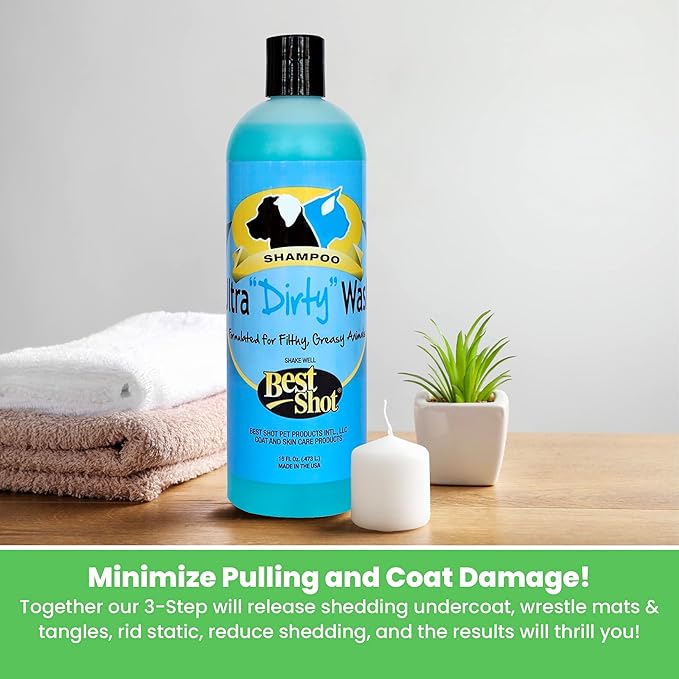 • Ultra Dirty Wash Shampoo: Best Shot’s Ultra Dirty Wash is a professional-strength pet shampoo specifically crafted for deep cleaning and deodorizing your pet’s coat. Formulated with a pH-balanced formula, this shampoo will not damage your pet’s skin
