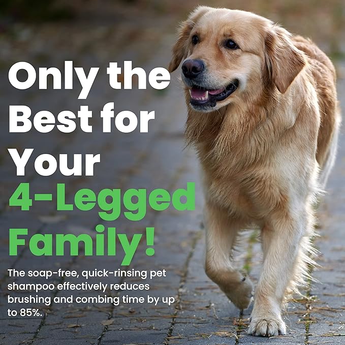 • Soap-Free, Quick-Rinsing: Our Ultra Dirty Wash shampoo is soap-free, quick-rinsing, produces fabulous suds, and leaves zero residues after washing. The pet shampoo effectively reduces brushing and combing time by up to 85%