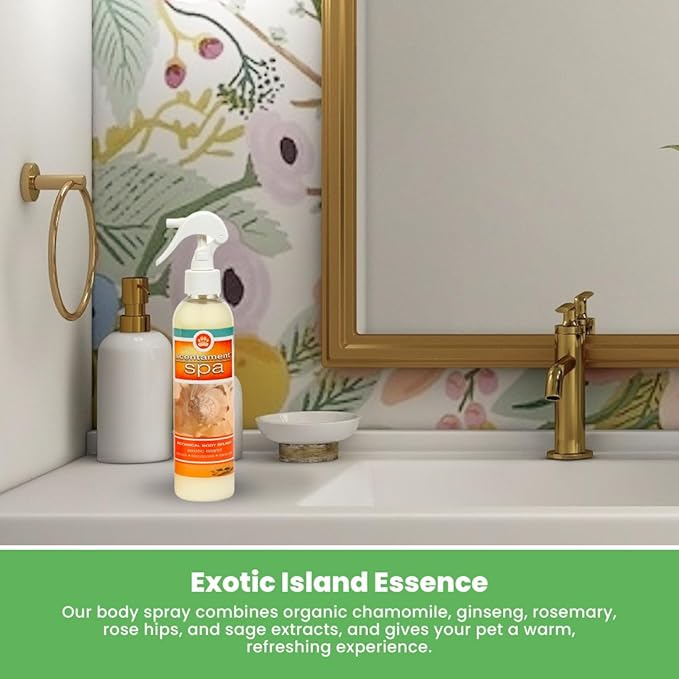 • Exotic Island Essence: The Exotic Island essence of our botanical cat and dog cologne combines organic chamomile, ginseng, rosemary, rose hips, and sage extracts, and gives your pet a warm, refreshing, and island-inspired experience after every splash.