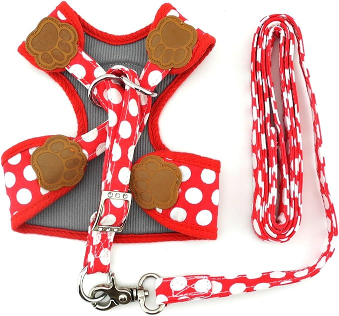 SMALLLEE_LUCKY_STORE New Soft Mesh Nylon Vest Pet Cat Small Medium Dog Harness Dog Leash Set Leads Red, M Chest:11.5"-15.5",Weight 6.5-11lbs (CWYP00068-Red-M)