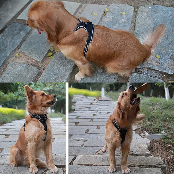OLizee® New No Pull Dog Harness Outdoor Adventure Reflective Markings Pet Vest with Handle Adjustable Protective Nylon Walking Pet Harness Variety of Sizes and Colors,Black L