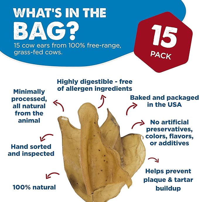 • DURABLE & LONG-LASTING: These cow ears ensure long-lasting entertainment for your dog. Perfect for aggressive chewers, these healthy dog treats help satisfy your dog’s natural chewing instinct while keeping boredom at bay and providing hours of enjoyment.