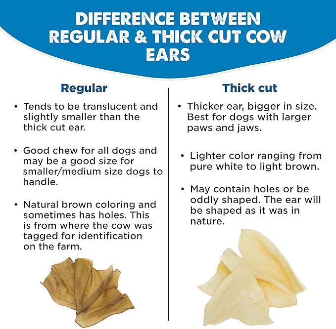 • ALL-NATURAL DOG TREAT: Each Cow Ear is made from free-range, grass-fed beef, offering a single-ingredient, high-protein treat. These chewy dog treats are 100% natural and free from additives or chemicals, providing your dog with a healthy, safe, and nutritious snack that’s also delicious.