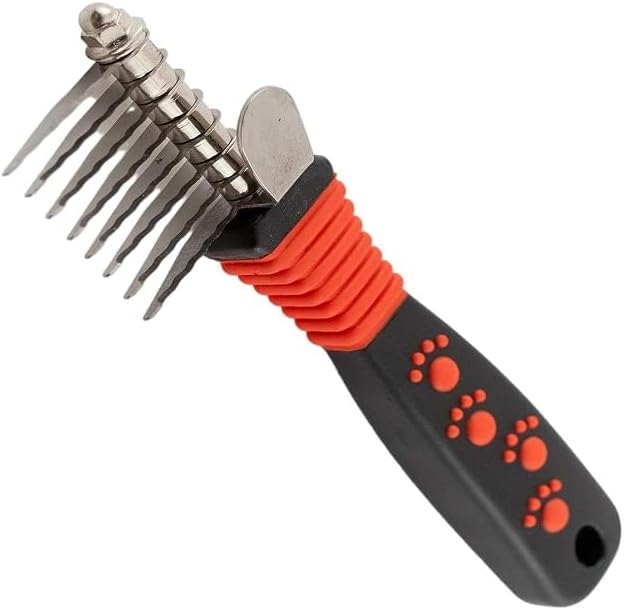 RYAN'S PET SUPPLIES Paw Brothers 8-Blade Dematting Brush, Comb Tool for Dog Grooming, Stainless Steel Blades, Comfort Grip, Gentle on Skin, Doodles, Poodles, Rake for Matted Fur Removal