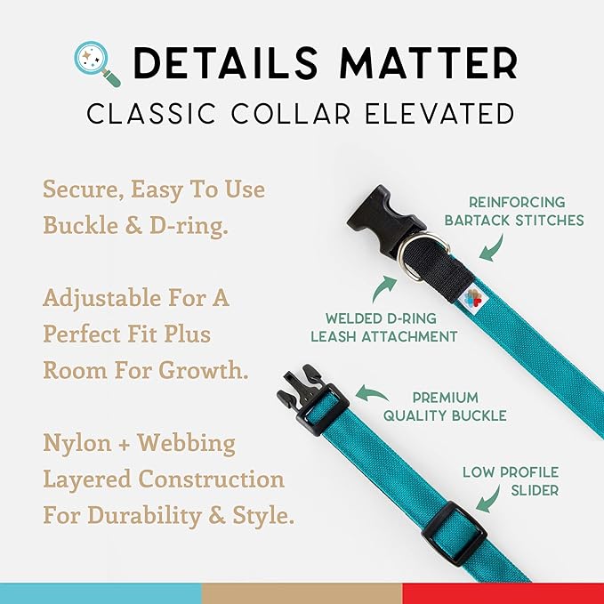 Dog Collar, Lightweight, Heavy Duty Dog Collar with Buckle, Fabric Pet Collar, Breathable & Adjustable Puppy Collar, Dog Collar for Large Dogs (Turquoise, Large - 14-24 Inch) - Wildebeest