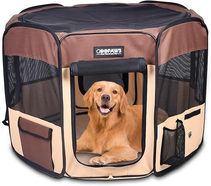 JESPET 61" Pet Dog Playpens, Portable Soft Dog Exercise Pen Kennel with Carry Bag for Puppy Cats Kittens Rabbits, Brown