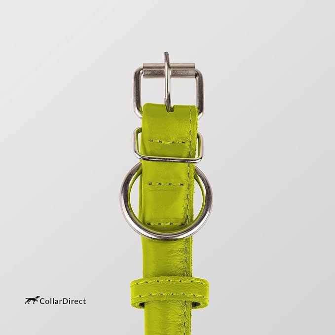 CollarDirect Rolled Leather Dog Collar, Soft Padded Round Puppy Collar, Handmade Genuine Leather Collar Dog Small Large Cat Collars 13 Colors (6-7 Inch, Lime Green Textured)