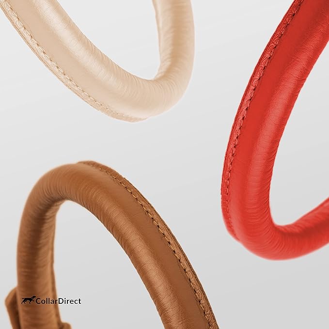 CollarDirect Rolled Leather Dog Collar, Soft Padded Round Puppy Collar, Handmade Genuine Leather Collar Dog Small Large Cat Collars 13 Colors (12-15 Inch, Red Textured)