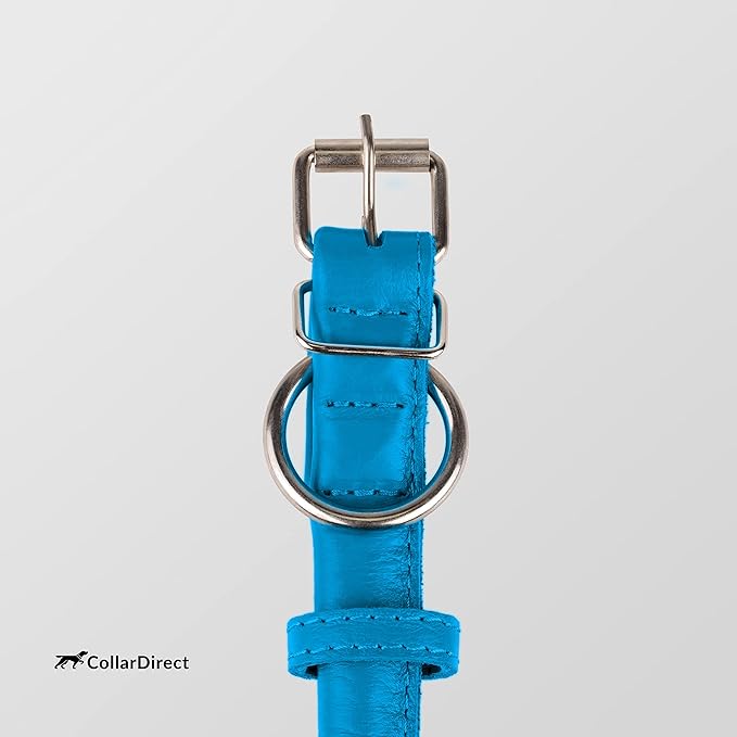 CollarDirect Rolled Leather Dog Collar, Soft Padded Round Puppy Collar, Handmade Genuine Leather Collar Dog Small Large Cat Collars 13 Colors (11-14 Inch, Light Blue Textured)
