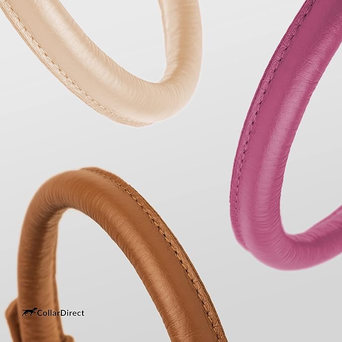 CollarDirect Rolled Leather Dog Collar, Soft Padded Round Puppy Collar, Handmade Genuine Leather Collar Dog Small Large Cat Collars 13 Colors (8-11 Inch, Pink Textured)