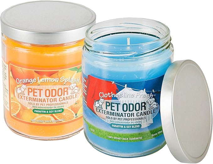 Pet Odor Specialty Pet Products Exterminator, 13 Ounce Orange Lemon Splash Jar Candle and 13 Ounce Clothesline Fresh Jar Candle