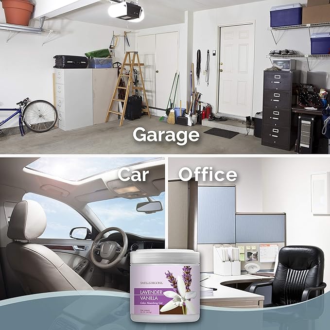 SMELLS BEGONE Air Freshener Odor Absorber Gel - 15 oz, Pack of 2 - Absorbs and Eliminates Odor in Pet Areas, Bathrooms, Cars, & Boats - Made with Essential Oils - Lavender Vanilla Scent