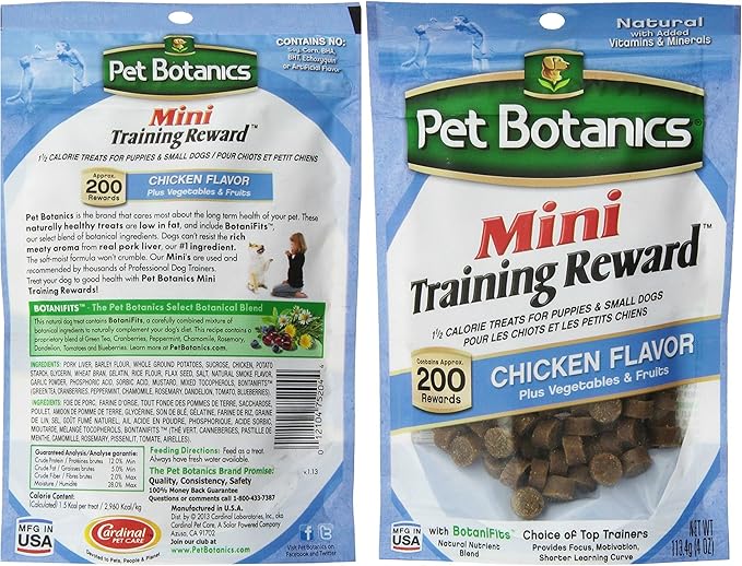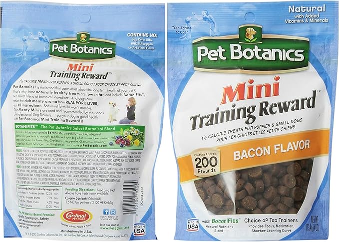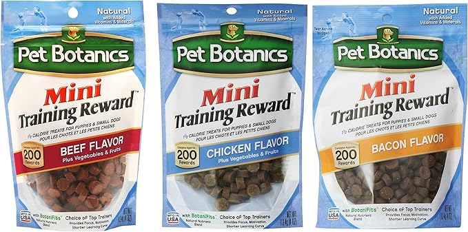 Pet Botanics Mini Training Rewards for Dogs 3 Flavor Variety Bundle: (1) Bacon, (1) Chicken and (1) Beef, 4 Oz Ea (200 Count per Bag, 3 Bags Total)