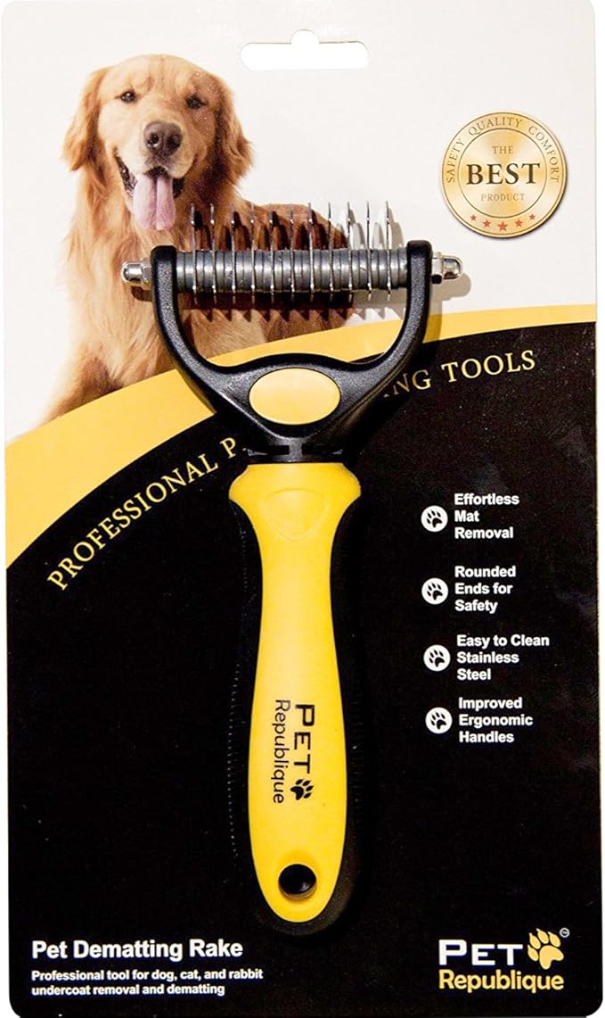 Pet Republique Dog Dematting Tool – Matt Splitters for Dogs, Cats, Rabbits, Long Haired Breed Pets – Effective Pet Dematting, Mat Remover, De-Matting Comb, or Dematter (6+11 Teeth)