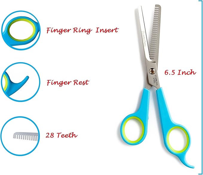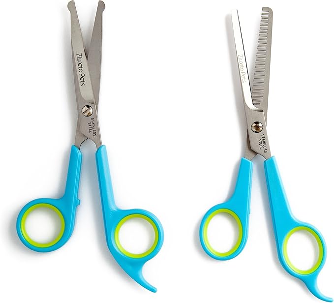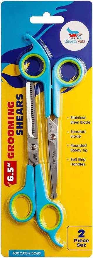 Premium Quality Grooming Scissors Set for Dog and Cats (2 Piece Set Incudes Cutting Shear and Thinning Shear 6.5 inch) with Rounded tips