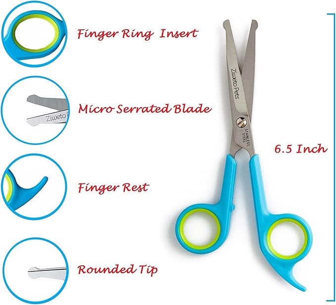 • The specially designed rounded tips ensure safety when grooming your pet.