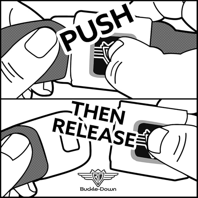 • The buckle is a miniature authentic SeatBelt Buckle, so you press the center button to release the clasp.