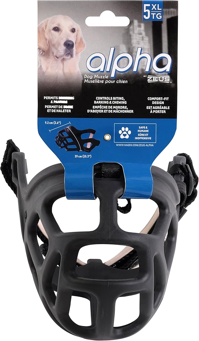 ZEUS Alpha TPR Muzzle for X-Large Dogs, Comfort Fit Design Prevents Biting, Barking and Chewing, Black