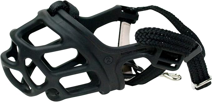 • Integrated Safety Hook: loops through dog's collar, ensures muzzle stays in place