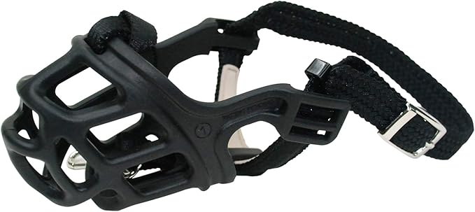 • Integrated Safety Hook: loops through dog's collar, ensures muzzle stays in place