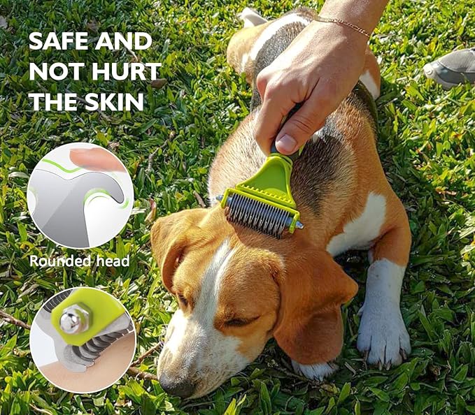 • Easy Pet Grooming Kit : This professional pet dematting tool kit breaks up tangles, effectively removes loose hair, dander, & dirt trapped beneath the fur, and stimulates the skin to promote a healthy coat. Comfortably and quickly get a professionally groomed look in minutes!