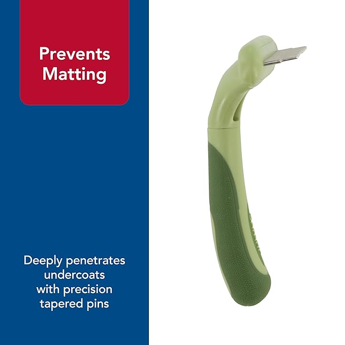 • Safari Undercoat Rake: This deshedding rake deeply penetrates undercoats with precision tapered pins to prevent matting; it's the perfect addition to your grooming tools for dogs