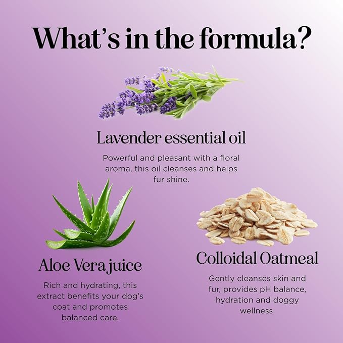 Soothing Oatmeal Shampoo for Dogs - Cleansing and Moisturizing Aloe & Oatmeal Dog Shampoo for Smelly Dogs of all Ages & Breeds - Gentle Sulfate and Paraben Free Dog Wash Made in USA (Lavender Vanilla)