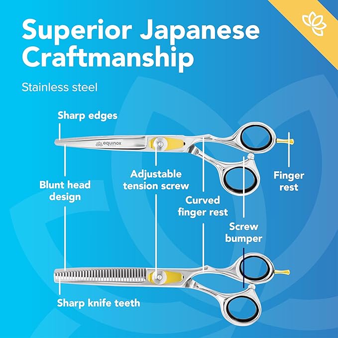 • Ergonomic - Our Equinox Professional Razor Edge Hair Cutting/Thinning Scissor Set is great for salon workers, barbers, and personal usage as well! Its distinctive easy grip handle design on each scissor allows the scissors to cradle fingers, delivering a confident haircut every time!