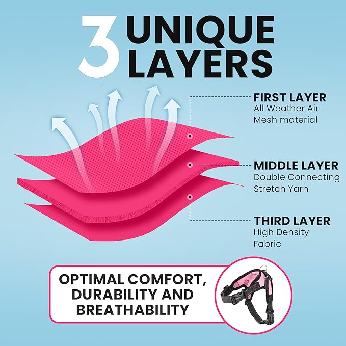 • All Weather Comfortable Mesh- Made with a soft breathable air mesh, this lightweight ultra comfortable pet harness is perfect for walks all year round with your Furry friend