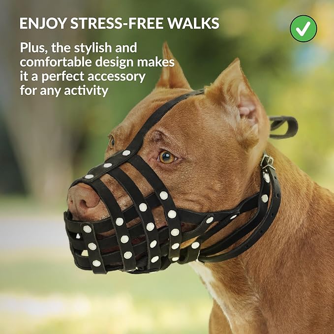 • COMFORTABLE: Our high-quality, handmade leather dog muzzle is skin-friendly. With a cross-weave design, this breathable, durable muzzle is soft on your dog’s fur because your pet’s comfort always comes first.