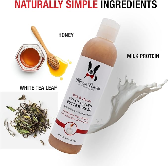 • Clean, Exfoliate, & Hydrate with Exfoliating Butter Wash - This premium shampoo hydrates your canine’s skin and coat with premium ingredients, such as Jojoba beads and botanical extracts for a healthy shine.
