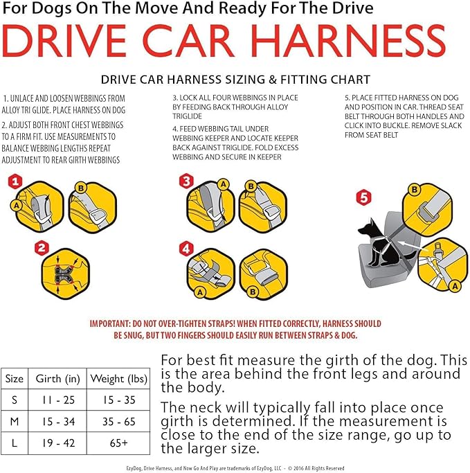 EzyDog Drive Safety Travel Dog Car Harness - Crash Tested US (FMVSS 213) - Premium Vehicle Restraint Vest for Protection and Comfort - Easy One Time Fit and Use with Car Seat Belt (Medium) Black