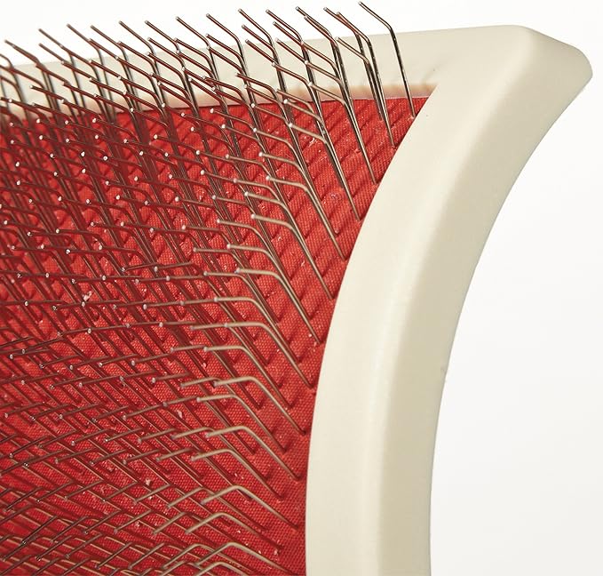 • The curved head provides a comfortable brushing experience for your pet, cushioned pins are paw-fect for gently gliding through a pal’s coat.