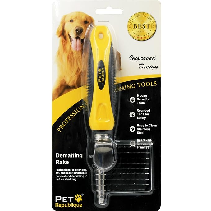 Pet Republique Dematting Tool for Dogs and Cats - Stainless Steel Matt Breaker Rake for Undercoat and Mat Brush - Knot Out for Long Haired Breed Pets