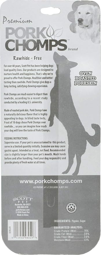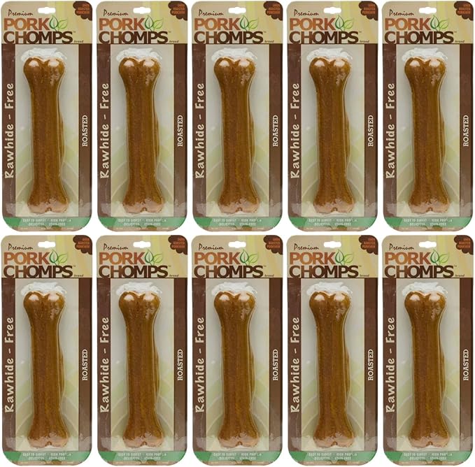 Premium Pork Chomps Roasted Pressed Bone Dog Chew, 7 Inch, 10 Pack