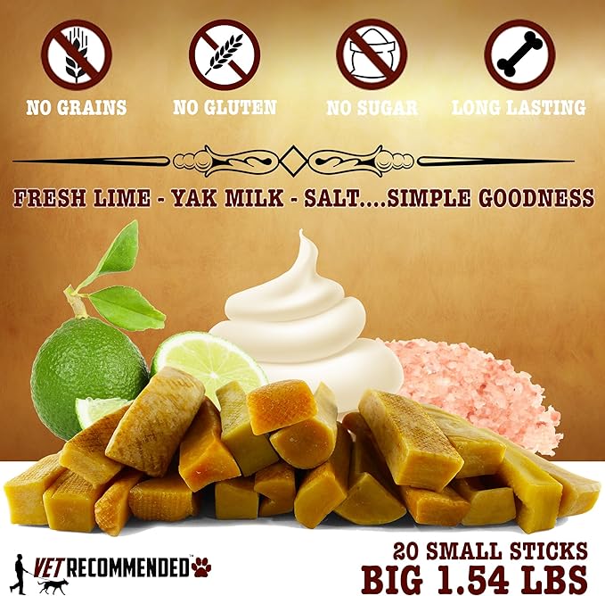 Yak Chew for Small Dogs Made from Himalayan Yak Milk (20 Count / 1.54LB). The 100% Natural Healthy Dog Chew - Extreme Long Lasting Cheese Chew