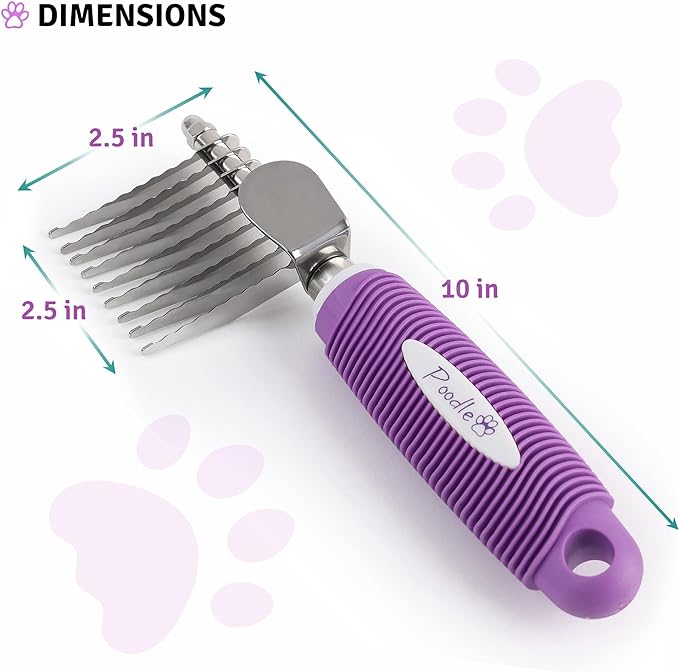 Poodle Dematting Fur Rake Comb Brush for Dogs and Cats - Long 2.5" Steel Safety Blades Metal Comb for Detangling Matted or Knotted Undercoat Hair