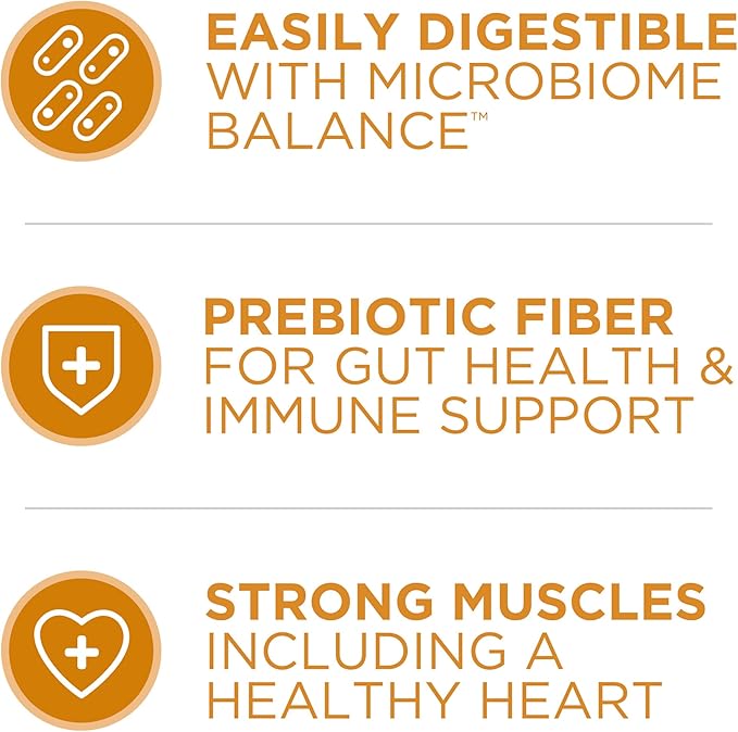 • Purina ONE chicken and rice dog food offers a microbiome balance and a SmartBlend of high-quality ingredients, including prebiotic fiber for dogs, to help your pal be his best self