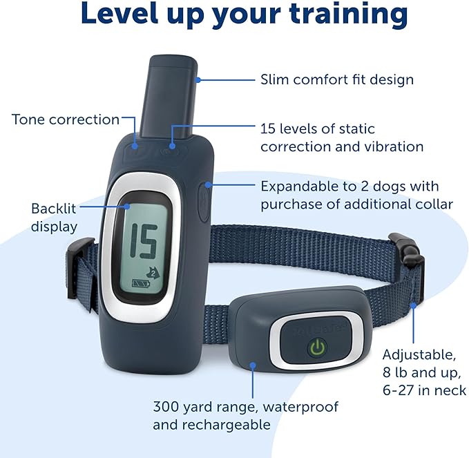 • OFF-LEASH TRAINING: Safely train and correct your pup’s unwanted behaviors the moment they happen within a 300-yard range; system can expand for use with 2 dogs with purchase of additional collar