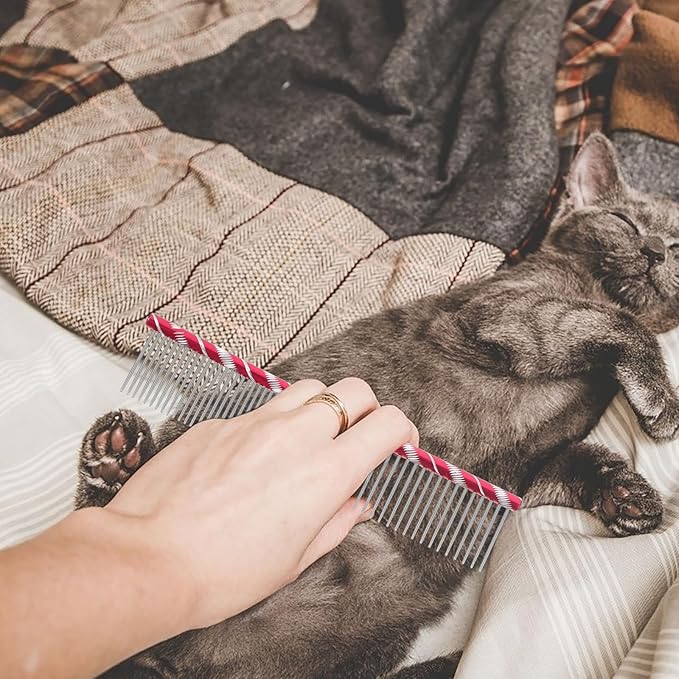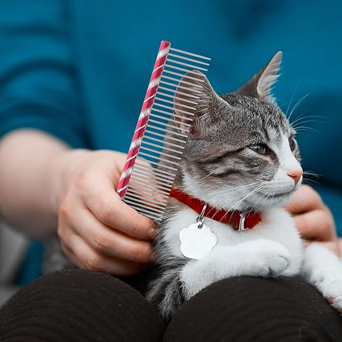 • Cat Grooming Comb, The rounded ends of the stainless steel teeth ensure a gentle grooming experience, preventing skin irritation and discomfort while removing mats and loose hair