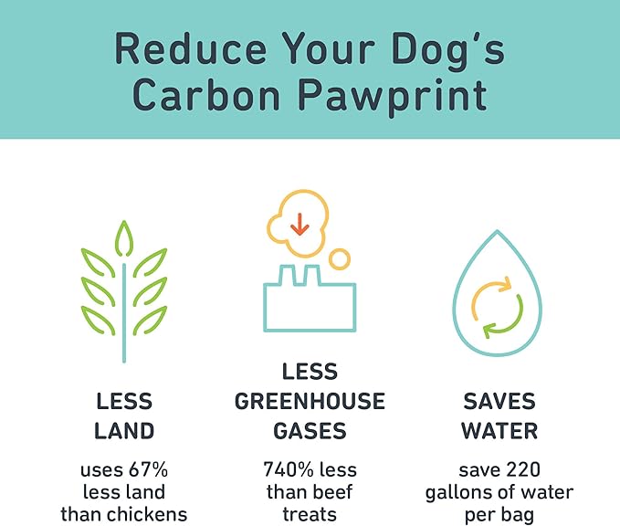 • REDUCING THE CARBON PAWPRINT - We make sustainability a priority! Insect protein uses less water & almost no greenhouse gases. Our treats save 200 gallons of water PER BAG compared to traditional products.