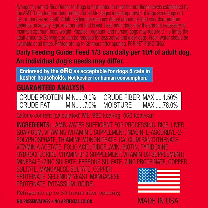 Evanger's Heritage Classics Lamb & Rice Dinner Jumbo for Dogs -20.2 oz Cans (Pack of 12)