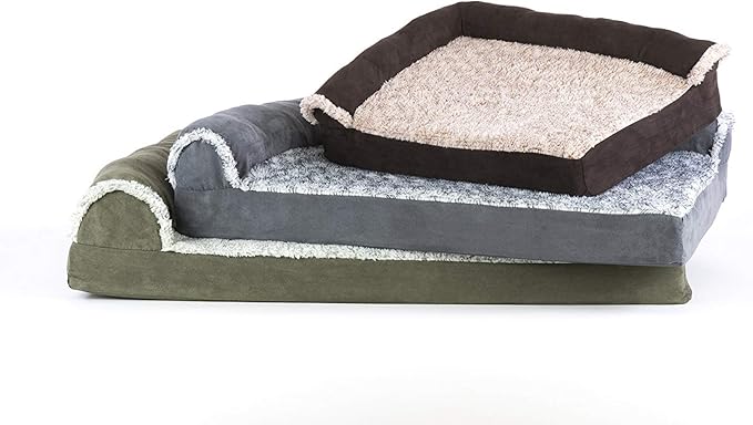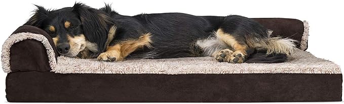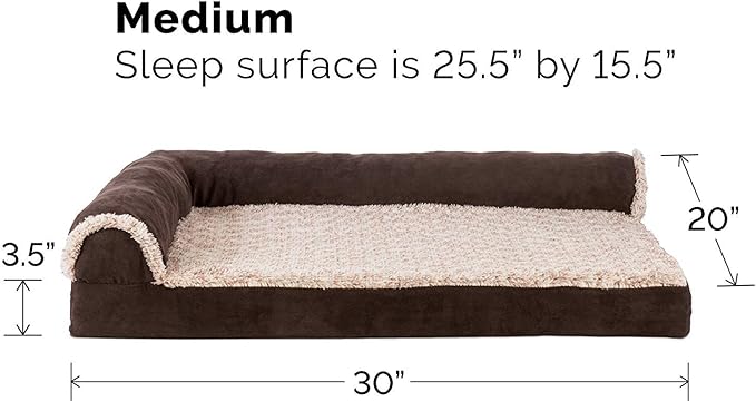 Furhaven Orthopedic Dog Bed for Medium/Small Dogs w/ Removable Bolsters & Washable Cover, For Dogs Up to 35 lbs - Two-Tone Plush Faux Fur & Suede L Shaped Chaise - Espresso, Medium,30"L x 20"W x 6"Th
