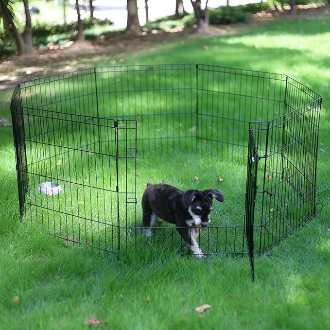 PEEKABOO Dog Pen Pet Playpen Dog Fence Indoor Foldable Metal Wire Exercise Puppy Play Yard Pet Enclosure Outdoor 8 Panels 24 Inch (Only Black playpen)