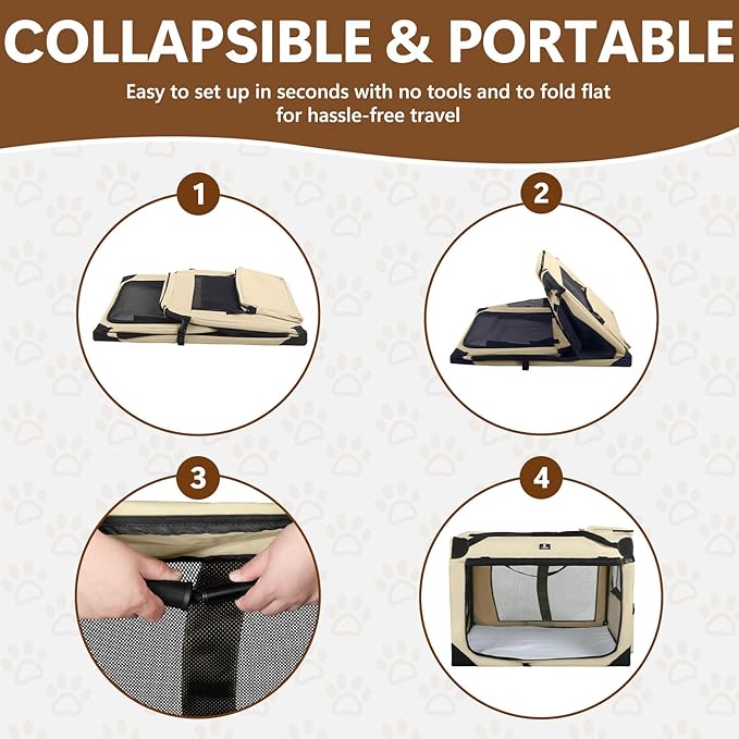 X-ZONE PET Dog Crate 3-Door Kennel, Collapsible Portable Soft Sided Pet Carriers for Indoor & Outdoor, Multiple (36-Inch, Rice White)